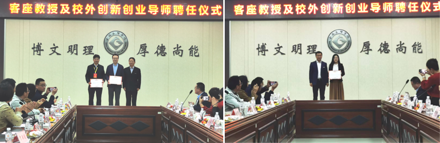 会议过程中举办了客座教授及校外创新创业导师聘任仪式。人事处处长刘鹏辉宣读了聘请崔斌、陈煜为公司客座教授的决定并颁发聘书;胡登卫读了聘请沈张婷为化学化工公司校外创新创业导师的决定并颁发聘书。