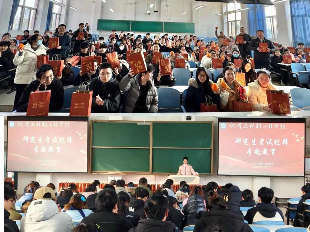 12月17日,化学与材料工程公司于高新校区思贤楼222教室组织开展研究生考试纪律专题教育暨“考研福袋”发放活动。
