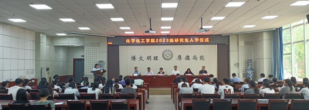会上,胡登卫代表全院师生向2023级新生表示祝贺和欢迎,向各位新生介绍了公司基本情况、办学特色以及在教学、科研、团队建设等方面取得成就。他以“既来之,则安之”“工欲善其事,必先利其器”和“岁寒,然后知松柏之后凋也”等三句《论语》语录为引,向2023级硕士研究生提出了三点要求:一要转变角色,安心学习,潜心研究,树立雄心大志;二要勇于担当,练就本领,“充电蓄能”,争做社会栋梁;三要持之以恒,耐住寂寞,善于思考,理论联系实际。同时希望大家能够秉承“博文明理,厚德尚能”的校训,发扬“励精图治,敢为人先”的化学人精神,在为学和为人的修炼过程中开创更加美好的未来。