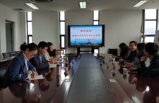 11月15日下午,化学化工公司党总支书记陈强、副经理王冬梅一行4人赴盐城师范公司化学与环境工程公司调研化学师范专业认证工作。该公司副经理仇立干、王彦卿热情接待了陈强一行。双方在生化教学楼401会议室进行了座谈,座谈会由仇立干主持。