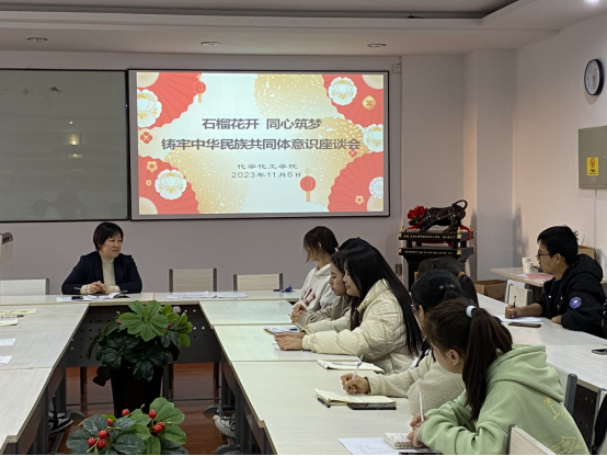 11月6日下午,公司在明理楼622会议室召开了以“石榴花开、同心筑梦”为主题的铸牢中华民族共同体意识座谈会。公司党委书记兰佳、辅导员马智超、少数民族员工和各班团支部书参加了会议。