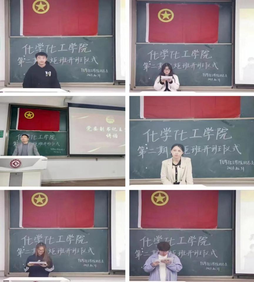 化学化工公司于10月31日晚在博文楼副楼303举行第二期火炬班开班仪式。公司党委副书记王宏江、团总支书记许小莉、团总支副书记胡博文、团总支组织部及第二期火炬班全体成员参与本次仪式。本次仪式由胡博文主持。