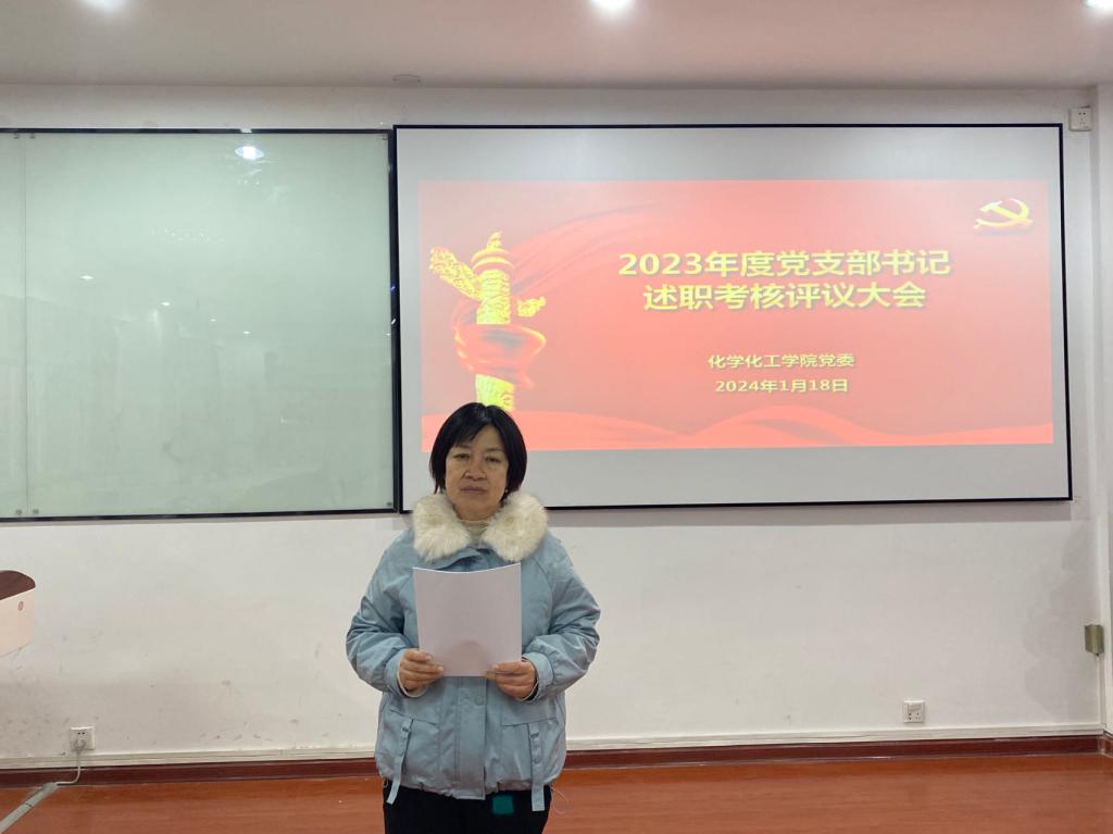 兰佳作了总结点评,充分肯定了各党支部书记在2023年度的工作中取得的成绩,指出了工作中存在的问题和不足,并就支部书记履行好党建第一责任人职责,带领支部党建工作提质增效提出四点要求。一要加强政治建设,提高政治站位。坚定不移把党的政治建设摆在首位,以习近平新时代中国特色社会主义思想为指导,强化理论学习,坚定不移用党的创新理论武装头脑、指导实践、推动工作。二要夯实党建基础,加强支部战斗堡垒作用。持续开展党的各项基础建设,围绕支部“七个有力”建设,严肃党内政治生活,严格“三会一课”,聚焦工作规范,进一步提升党建规范化水平。三要围绕中心工作,推动党建业务深度融合。聚焦公司“双一流”建设,围绕立德树人根本任务,党建引领,开展“一支部一特色”组织活动,充分发挥师生党员先锋模范作用,为公司高质量发展贡献力量。四是忠诚履职尽责,推动全面从严治党。支部书记要自觉履行第一责任人责任,以上率下,推进公司党委巡察问题的整改,将全面从严治党向基层延伸,营造良好的政治生态和育人环境。(化学化工公司党委 文/刘明辉 图/马智超 审核/兰佳)