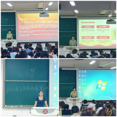 6月9日晚,公司一站式员工社区在博文楼副楼405教室成功举办2025年6月征兵及学费代偿政策宣讲会。本次活动特邀地理与环境公司郑集龙、文学与新闻传播公司李书旗、政法公司黄嘉伟、化学化工公司王悦4位优秀退役士兵担任主讲,辅导员王媛,2024级宿舍长代表共计70余人参与。