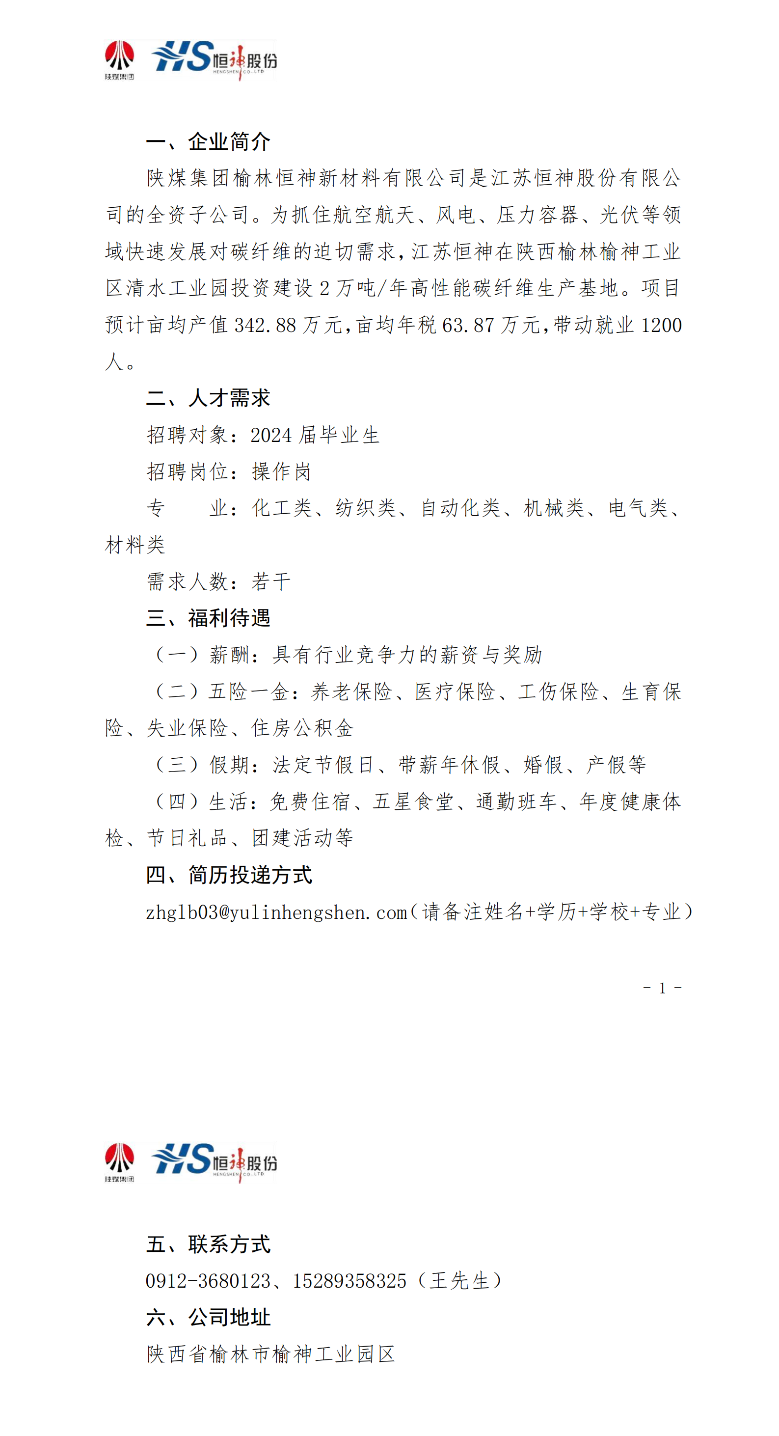 陕煤集团榆林恒神新材料有限公司招聘化工类毕业生