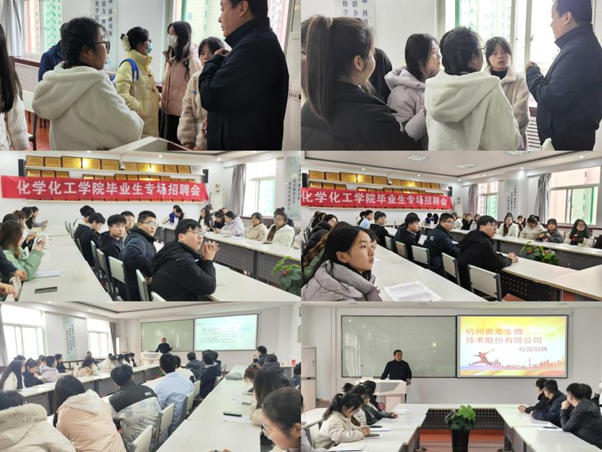 此次专场招聘会的成功举办,不仅为公司毕业生提供了宝贵的就业机会,也进一步加深了公司与杭州奥泰生物科技有限公司之间的合作关系,为双方未来的深度合作奠定了坚实的基础。化学化工公司将继续秉持“开放合作、互利共赢”的原则,不断探索校企合作的新模式,为培养更多适应社会需求的高素质人才贡献力量。(文/张媛媛、殷朝 图/王诗雨 审核/王宏江、钟玉彬)