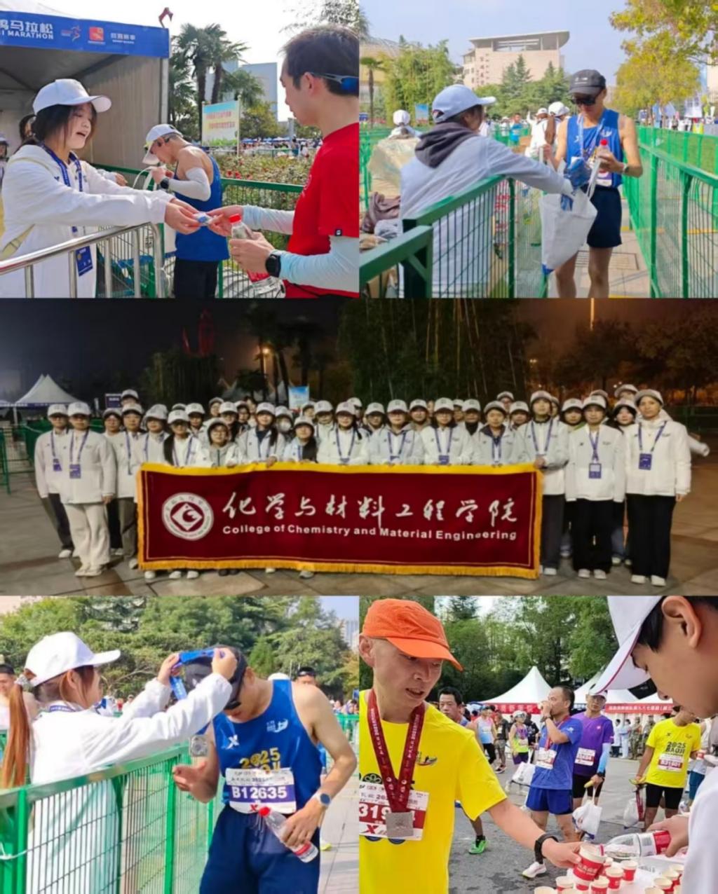 在志愿服务过程中,化材公司志愿者充分发挥了在实验操作中培养出的严谨细致、流程规范的专业素养。无论是补给点的桌面摆放、物资分装,还是补给传递,每一个环节都体现出精准高效的工作标准,保障了赛事服务的井然有序。